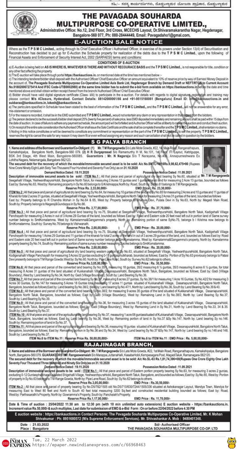 | Inspection Details: | For Inspection Details Please Contact The Authorized Officer, Mr K Mohan Sivakumar, Mobile No.8951680572, Mr. Shivashankar A, 9480401348 During Office Hours Only. |
