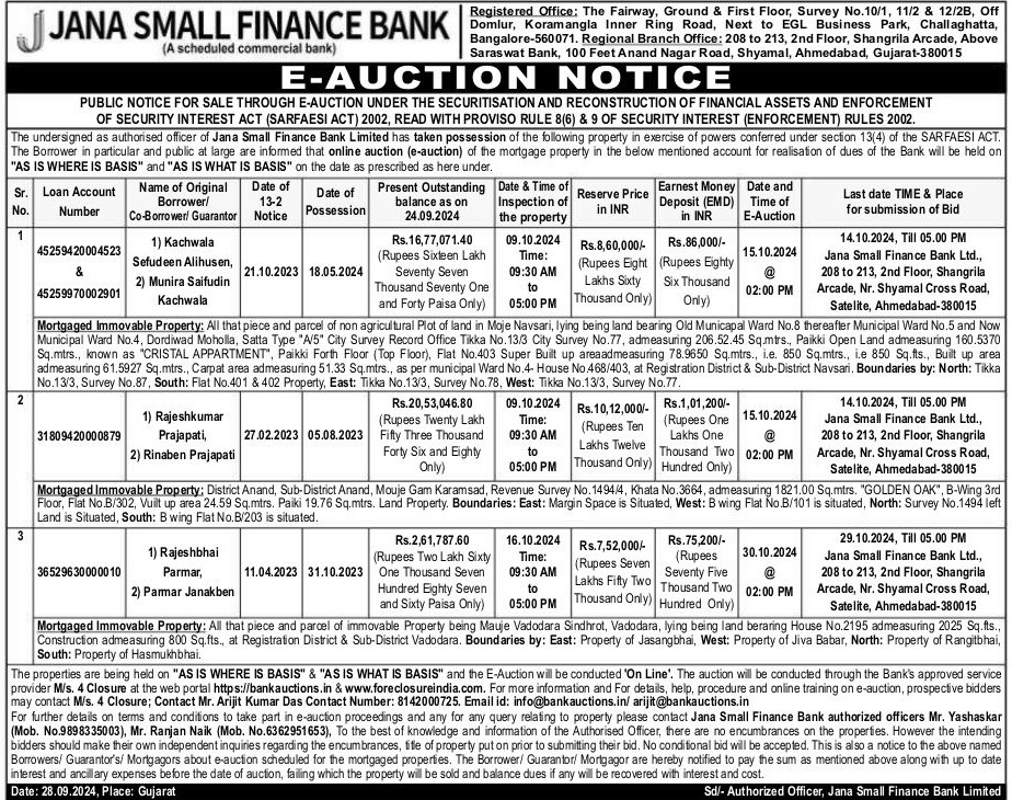 | End Date and Time of Auction: | 15-10-2024 3:00 pm |