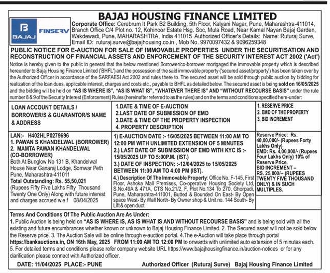 | End Date and Time of Auction: | 16-05-2025 12:00 pm |