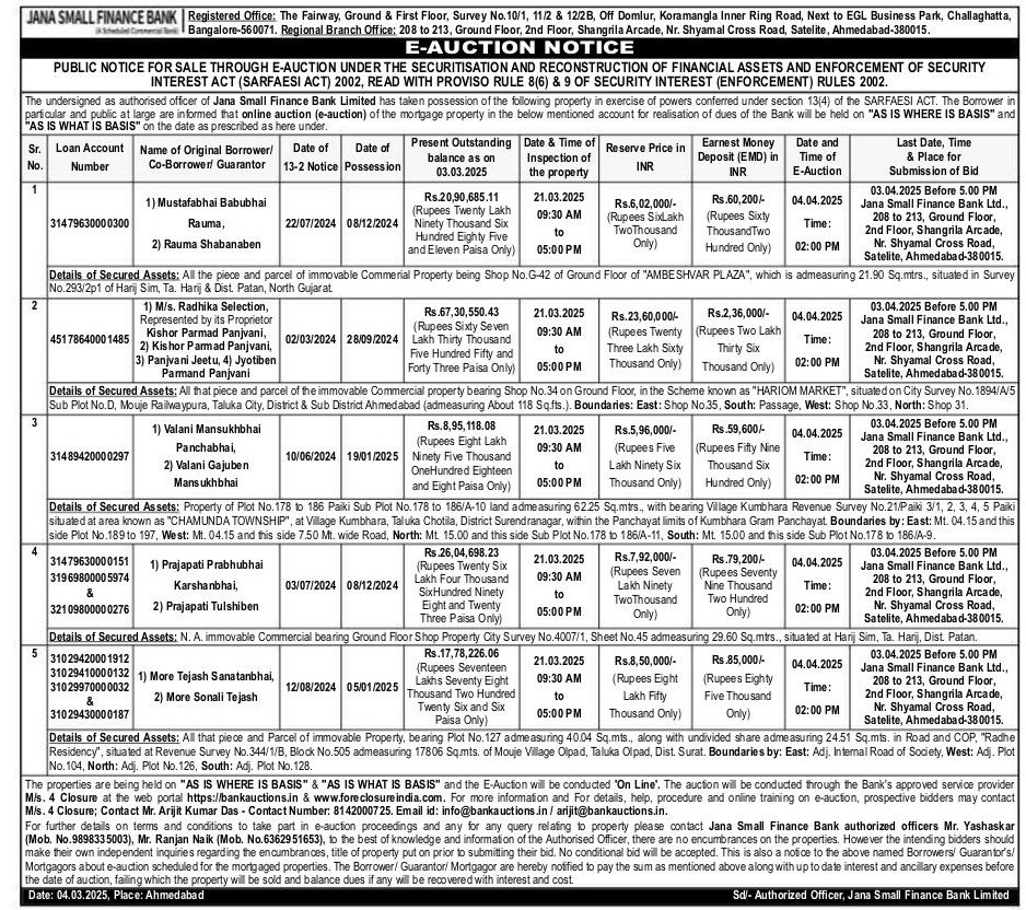 | End Date and Time of Auction: | 04-04-2025 3:00 pm |