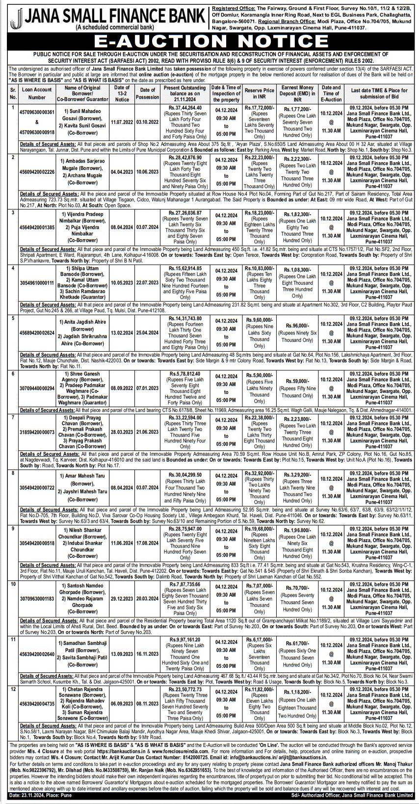 | Contact Details: | Contact The Authorized Officer: Mr. Manoj Thakur (Mob. No.9822396792), Mr. Dilshad (Mob. No.8433508759), Mr. Ranjan Naik (Mob. No.6362951653) |