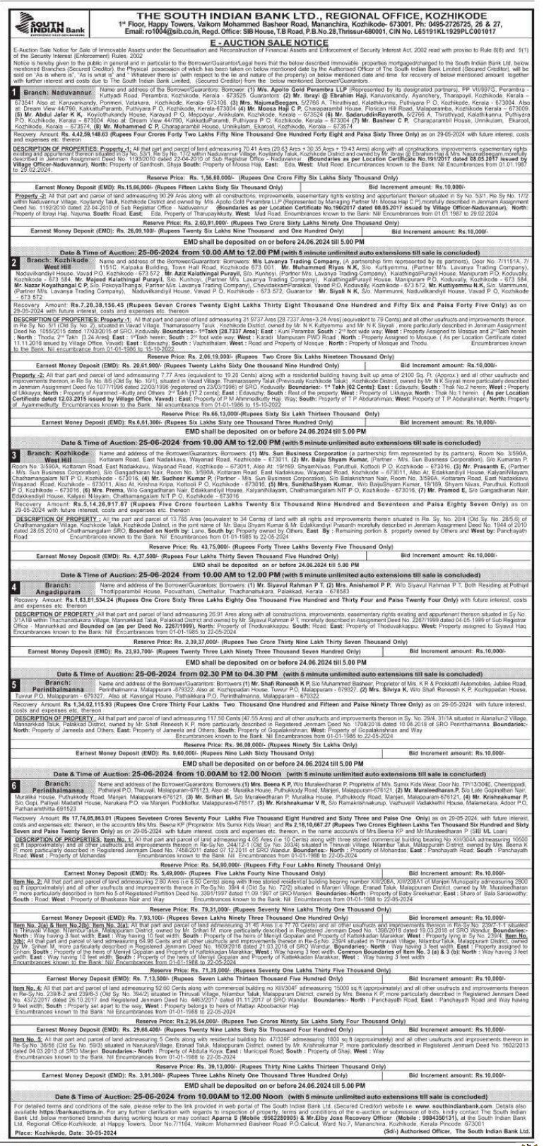 | Contact Details: | Contact The Authorized Officer: Aparna S ph No: 9562280905, Mr. Elby Jose Ph No: 9884350131 |