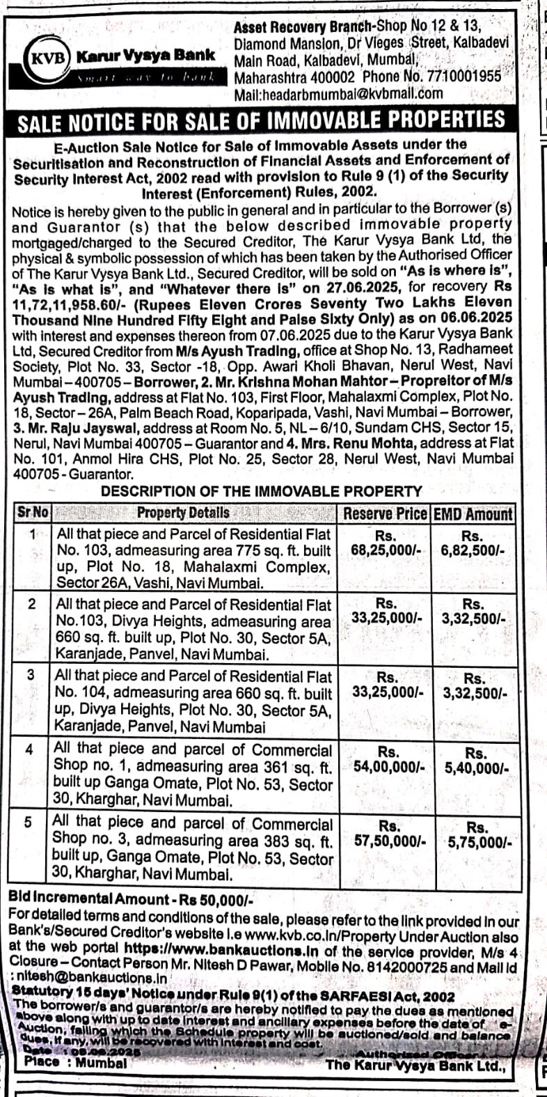| End Date and Time of Auction: | 27-06-2025 12:00 pm |