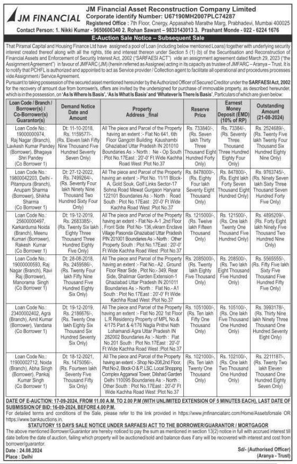 | Start Date and Time of Auction: | 17-09-2024 11:00 am |