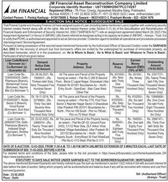 | Start Date and Time of Auction: | 12-03-2025 11:00 am |