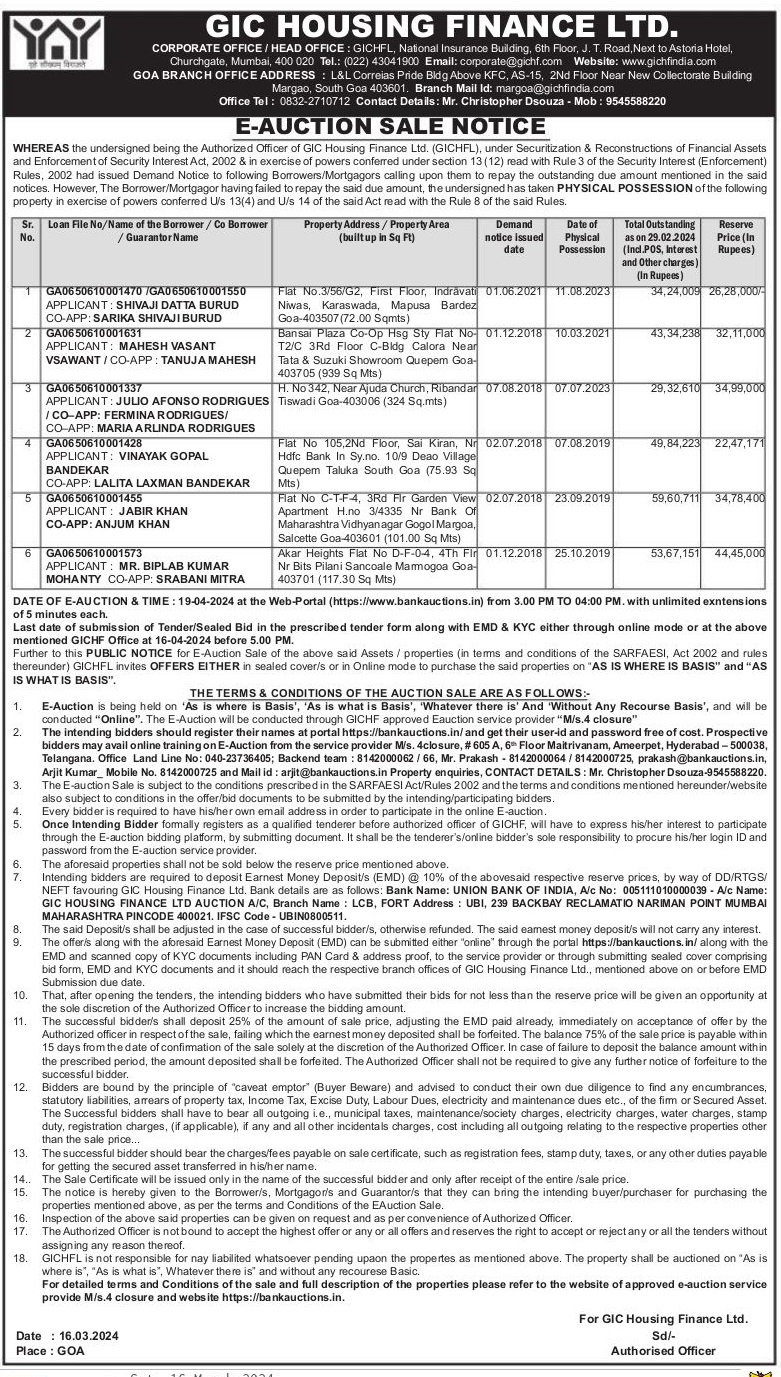 | Start Date and Time of Auction: | 19-04-2024 3:00 pm |