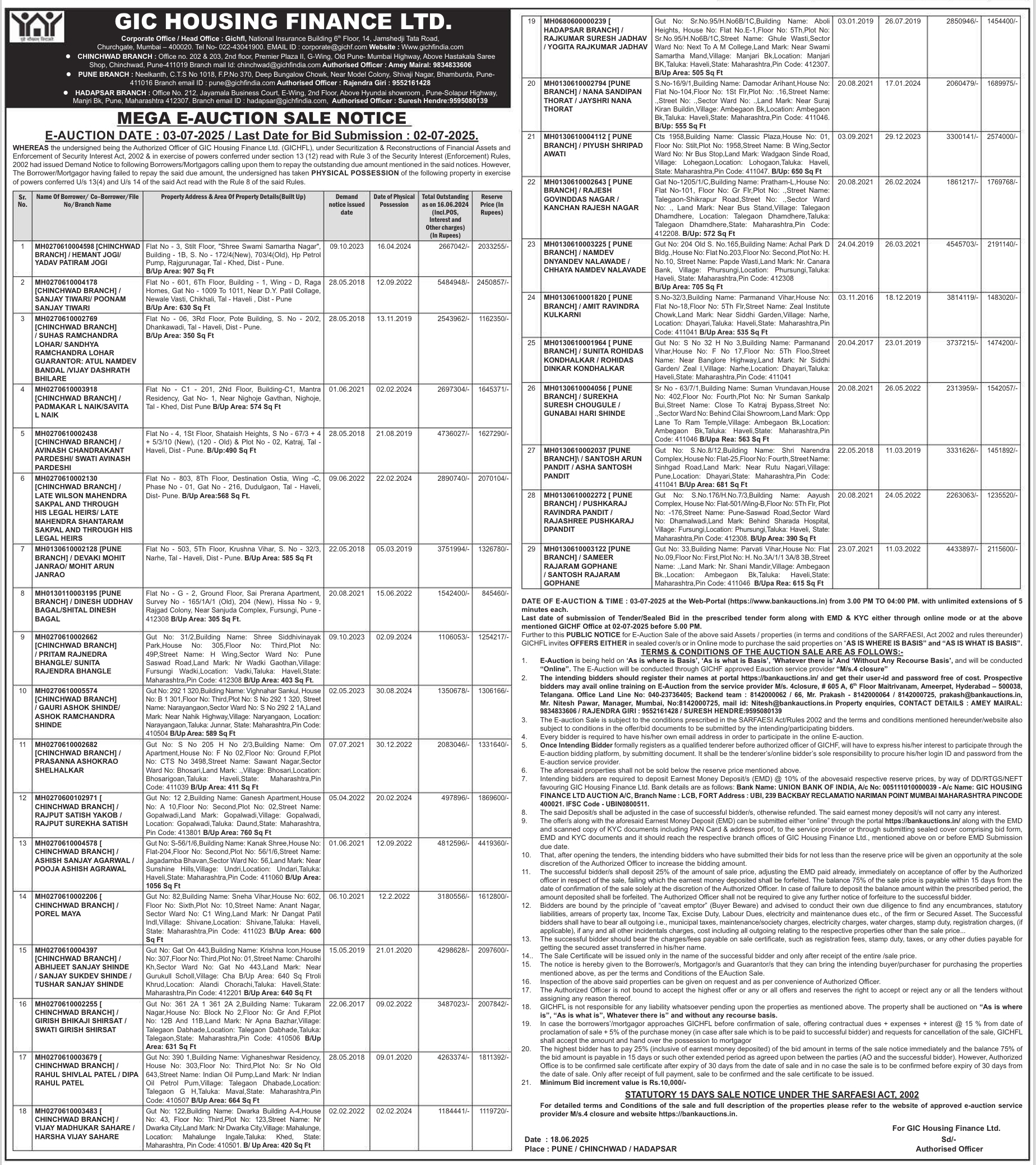 | Inspection Details: | For Inspection Details Contact The Authorized Officer: AMEY MAIRAL: 9834833606, RAJENDRA GIRI: 9552161428, SURESH HENDRE:9595080139 |
