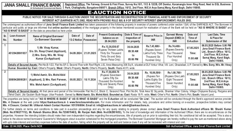 | End Date and Time of Auction: | 07-05-2025 12:00 pm |