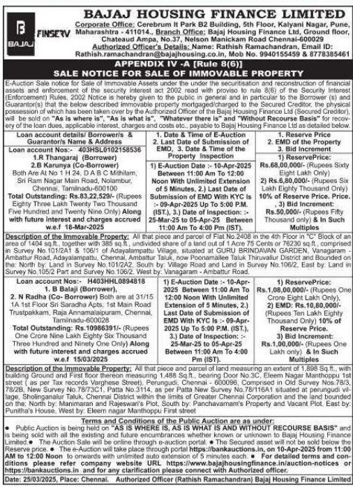 | End Date and Time of Auction: | 11-04-2025 12:00 pm |