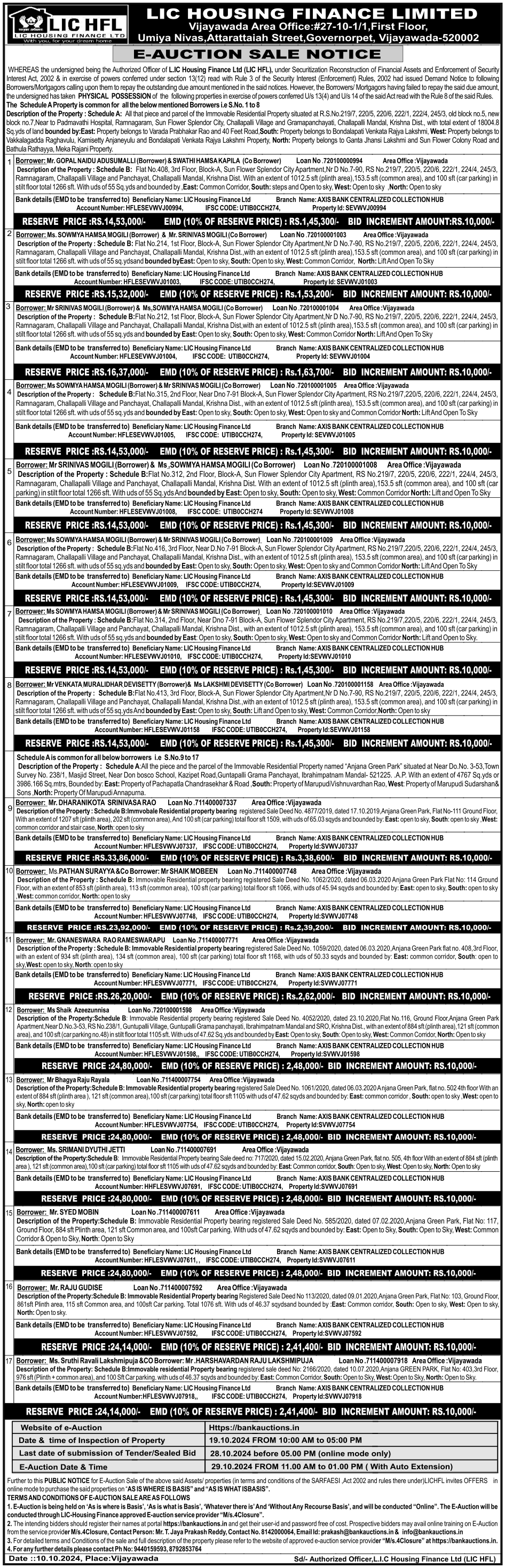 | End Date and Time of Auction: | 29-10-2024 1:00 pm |