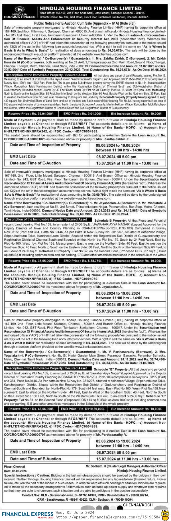 | End Date and Time of Auction: | 15-07-2024 1:00 pm |