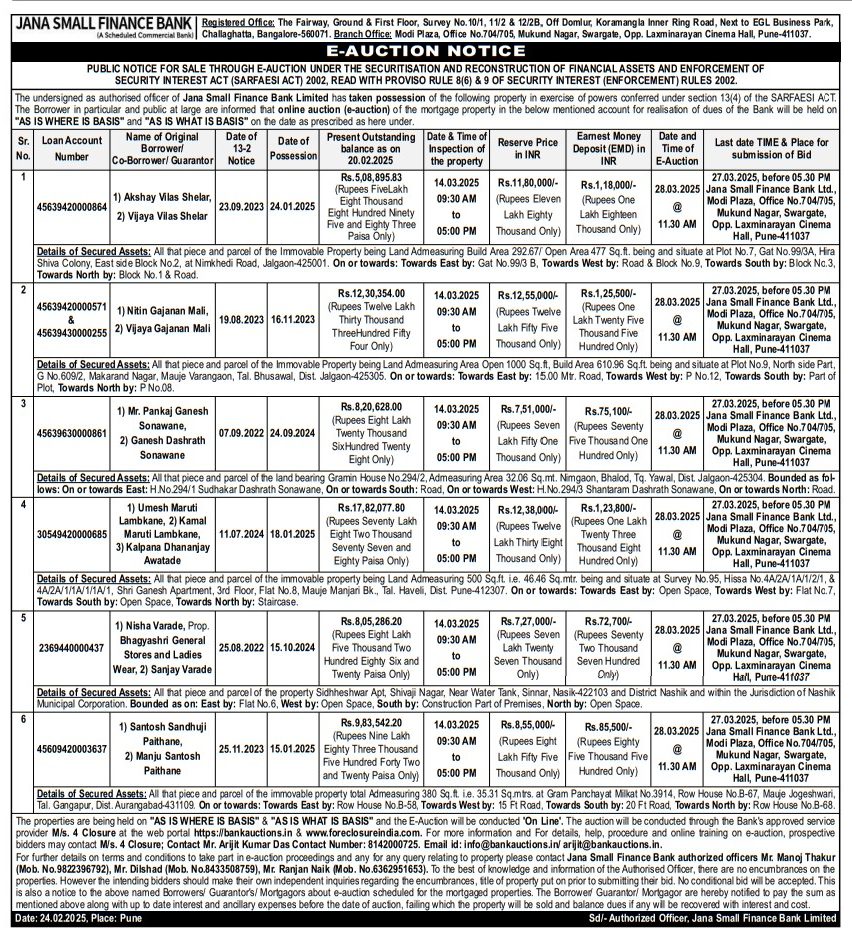 | Contact Details: | Contact The Authorized Officer: Mr. Manoj Thakur (Mob. No.9822396792), Mr. Dilshad (Mob. No.8433508759), Mr. Ranjan Naik (Mob. No.6362951653) |