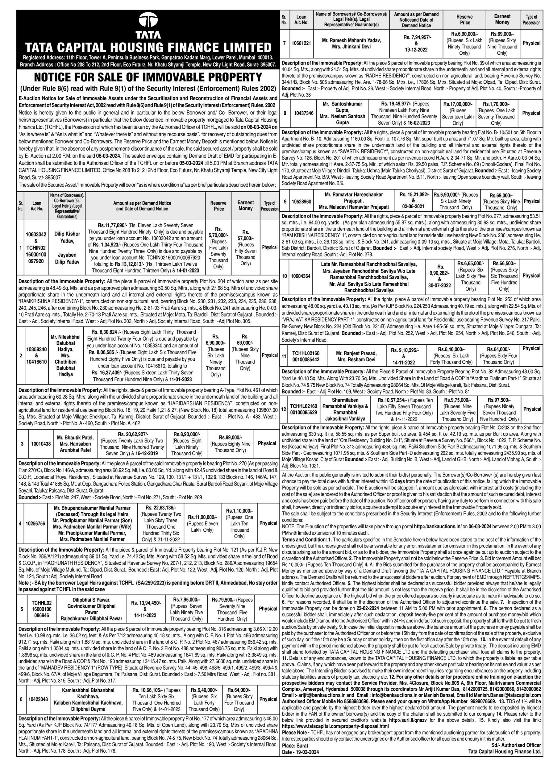 | Contact Details: | Contact The Authorized Officer: Manish Bansal - 8588983696, WhatsApp Number - 9999078669, Manish.Bansal@tatacapital.com |