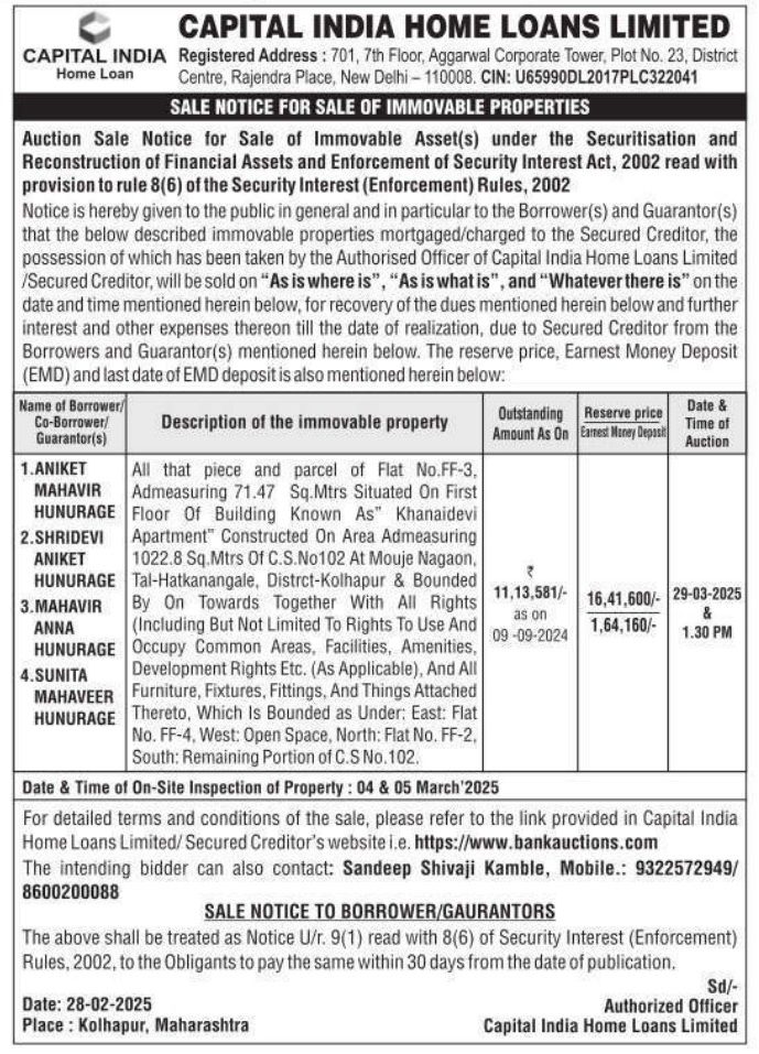 | Contact Details: | Contact The Authorized Officer: Sandeep Shivaji Kamble, Mobile.9322572949/ 8600200088 |