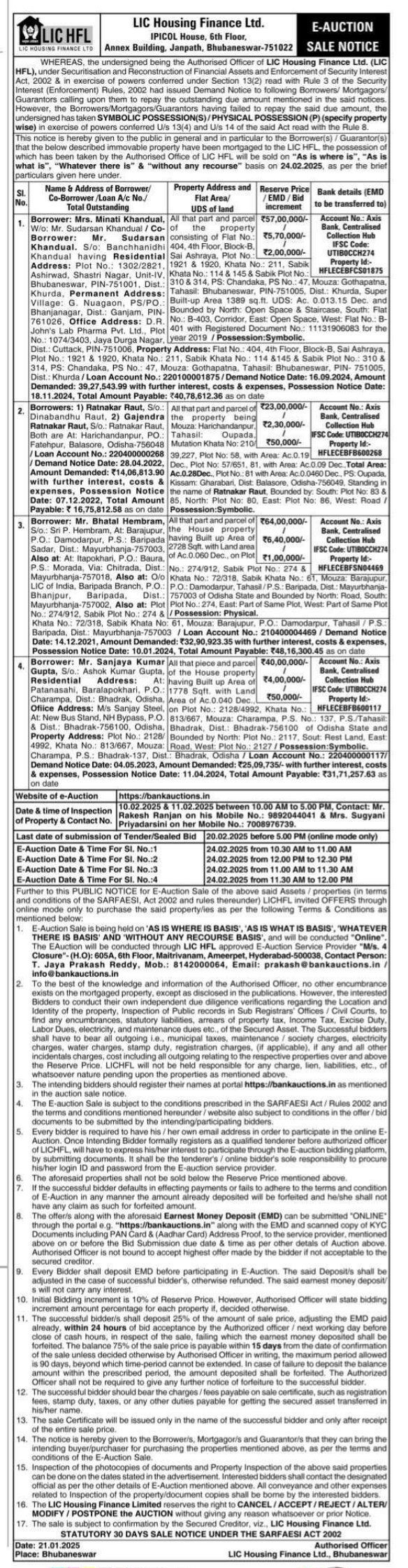 | Contact Details: | Contact The Authorized Officer: Mr. Rakesh Ranjan 9892044041, Mrs Sugyani Priyadarsini 7008976739 |