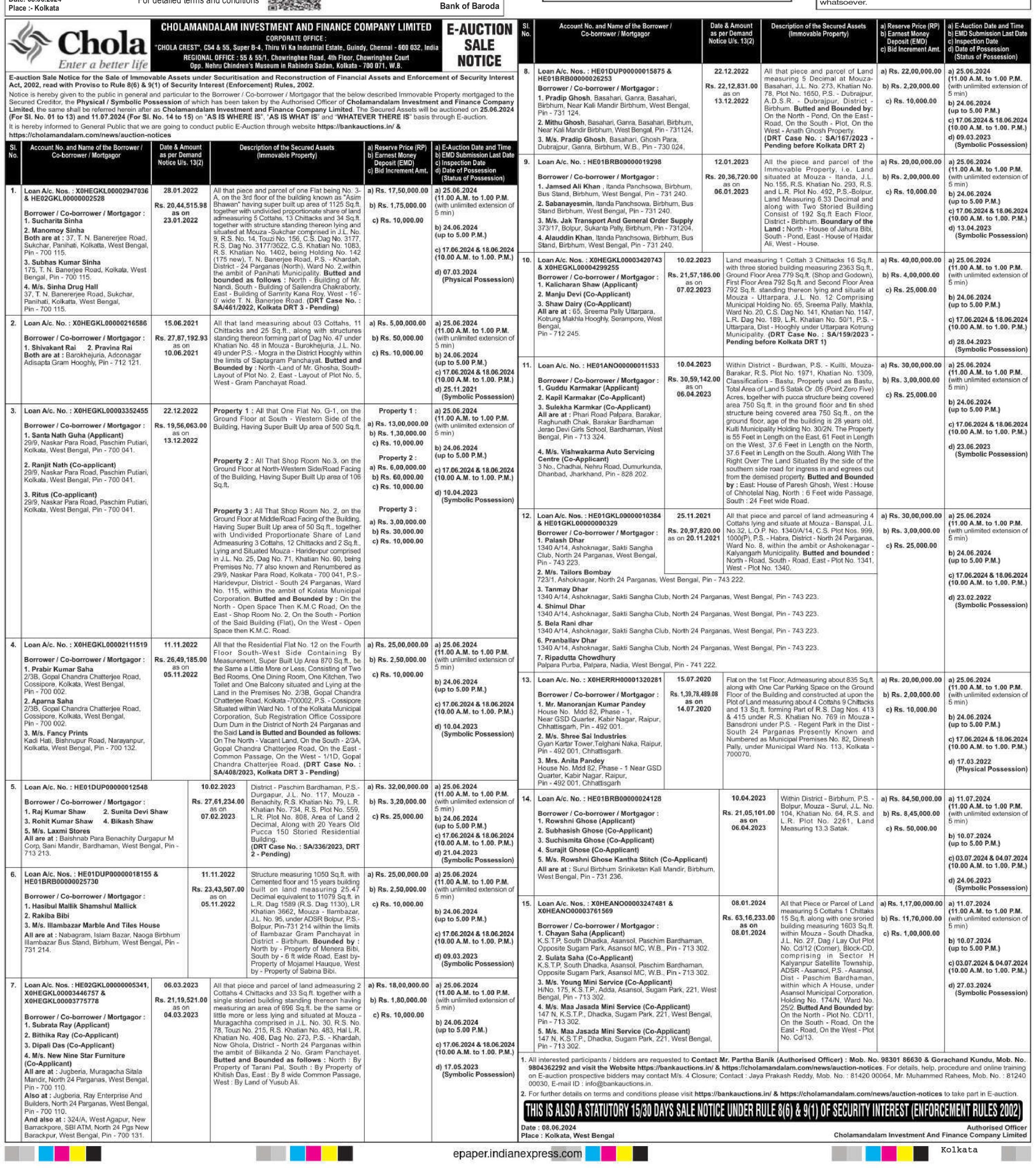 | Contact Details: | Contact The Authorized Officer: Mr.Partha Banik :9830186630, Muhammaed Rahees: 8124000030 |