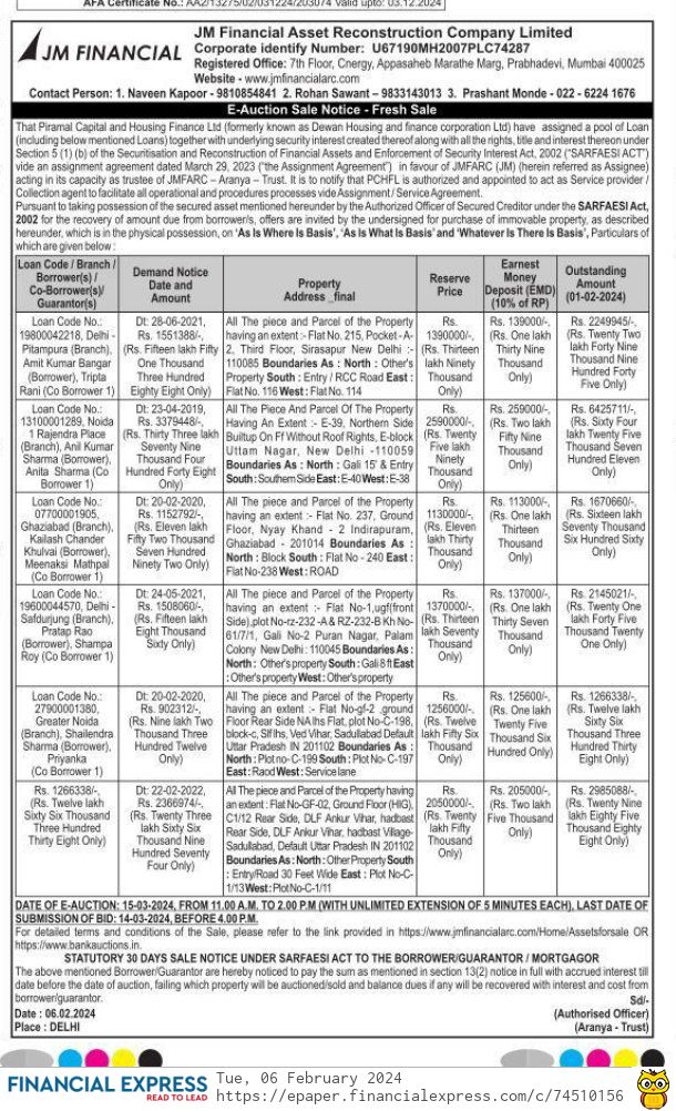 | End Date and Time of Auction: | 15-03-2024 2:00 pm |