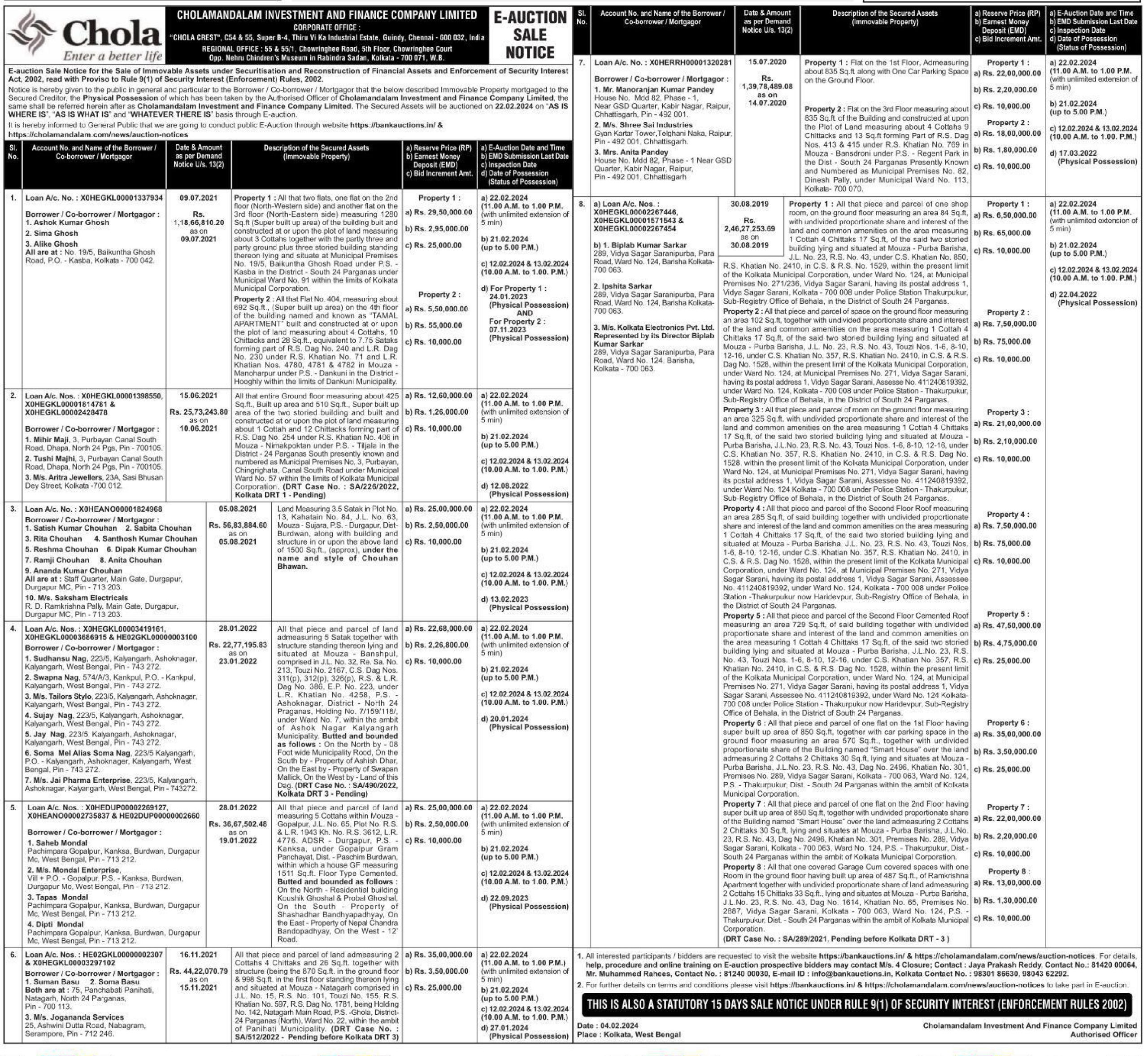 | Contact Details: | Contact Authorized Officer : 98301 86630, 98043 62292, Mr. Muhammed Rahees Mob. No.:8124000030 |