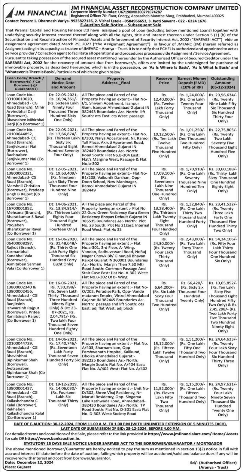 | Contact Details: | Contact The Authorized Officer: 1. Dharmesh Variya-9925827126, 2. Vishal Ketele -9584966653, 3. Jyoti Sawant-022-6224 1676 |