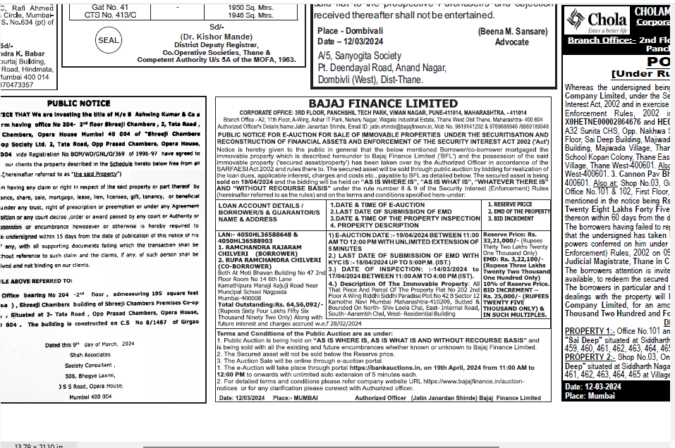 | Contact Details: | Contact The Authorized Officer's Details Name Jatin Janardan Shinde Email ID Mob No. 9819141202 & 9769688946, 8669189048 |