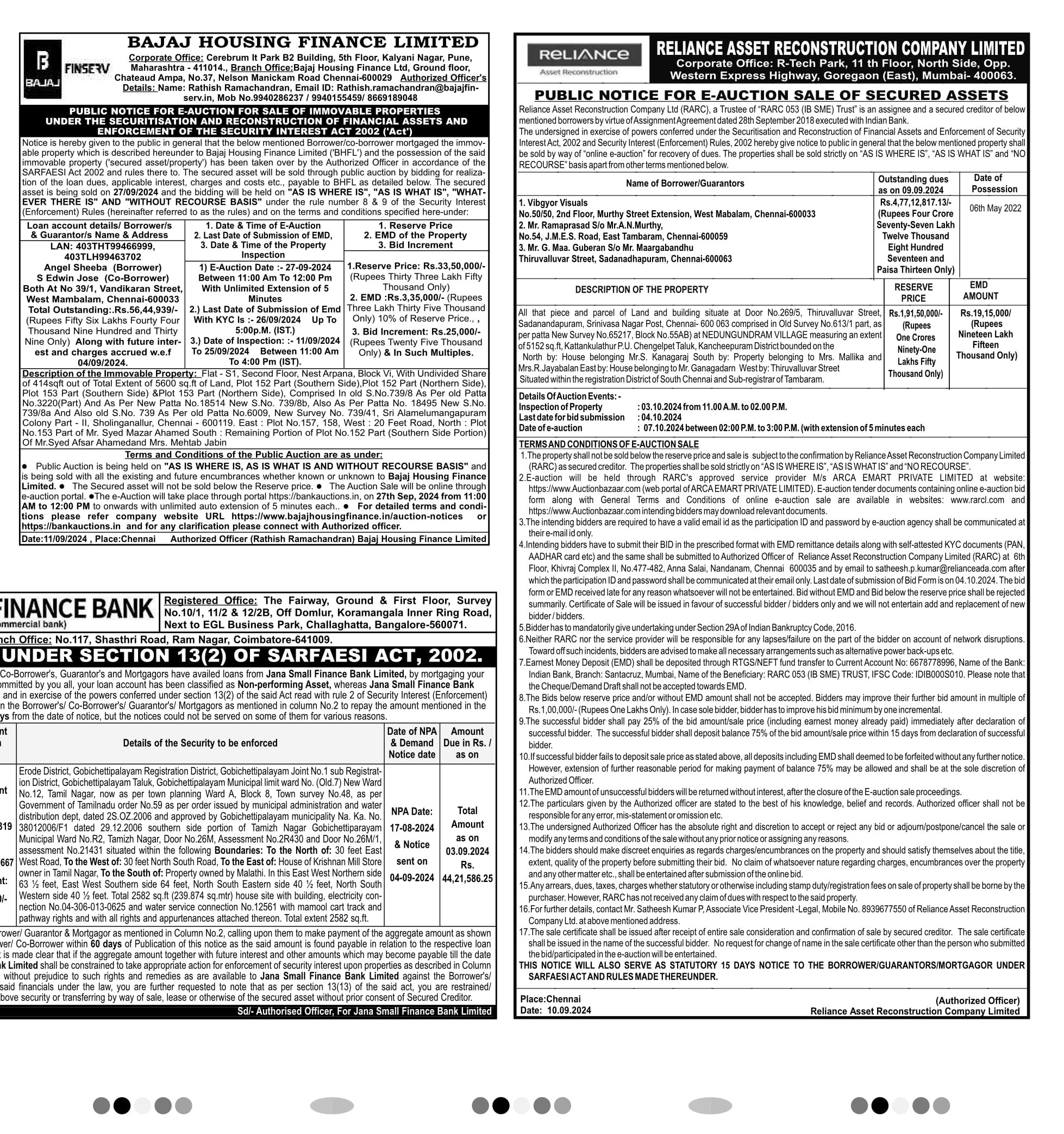 | Contact Details: | Contact The Authorized Officer: Rathish Ramachandran Email: Rathish.ramachandran@bajajfinserv.in |