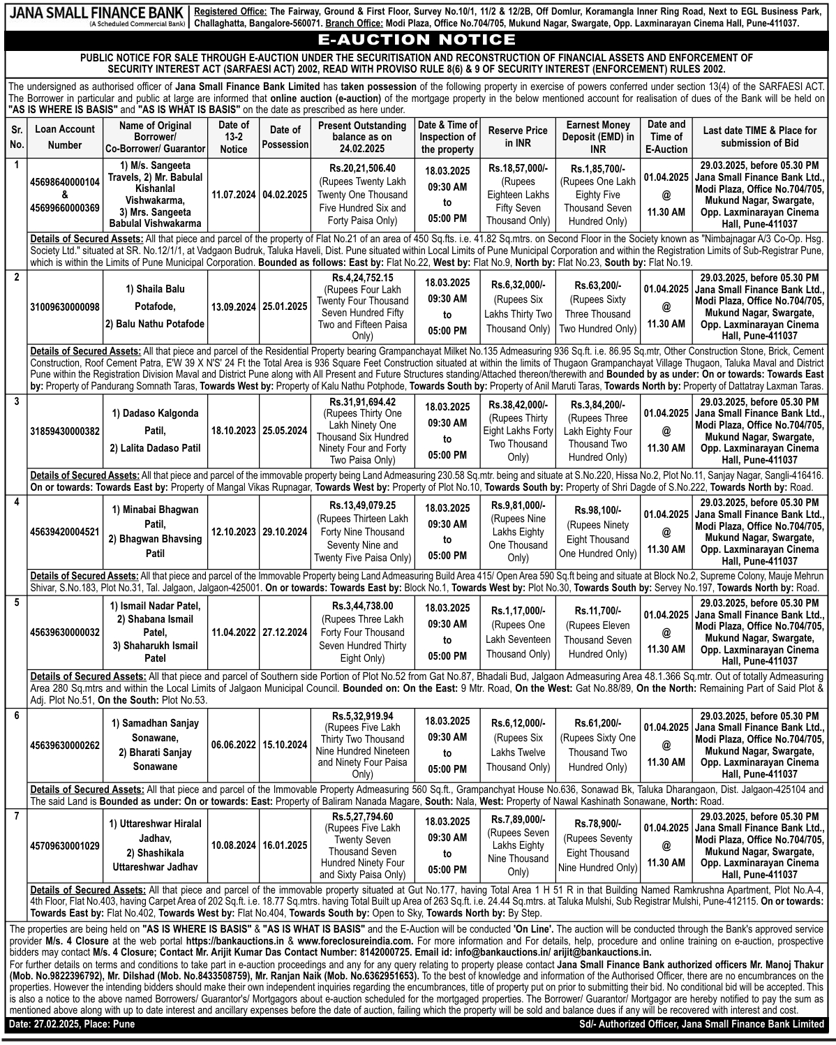 | Contact Details: | Contact The Authorized Officer: Mr. Manoj Thakur (Mob. No.9822396792), Mr. Dilshad (Mob. No.8433508759), Mr. Ranjan Naik (Mob. No.6362951653) |