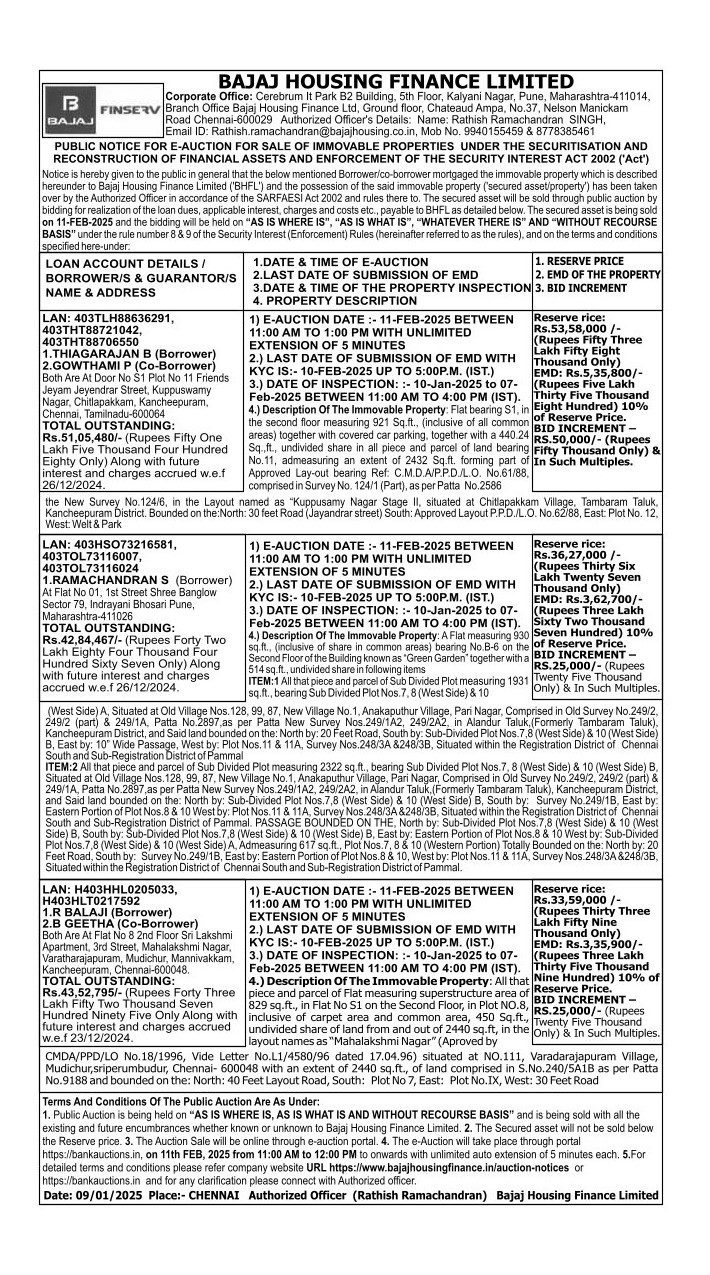 | Start Date and Time of Auction: | 11-02-2025 11:00 am |
