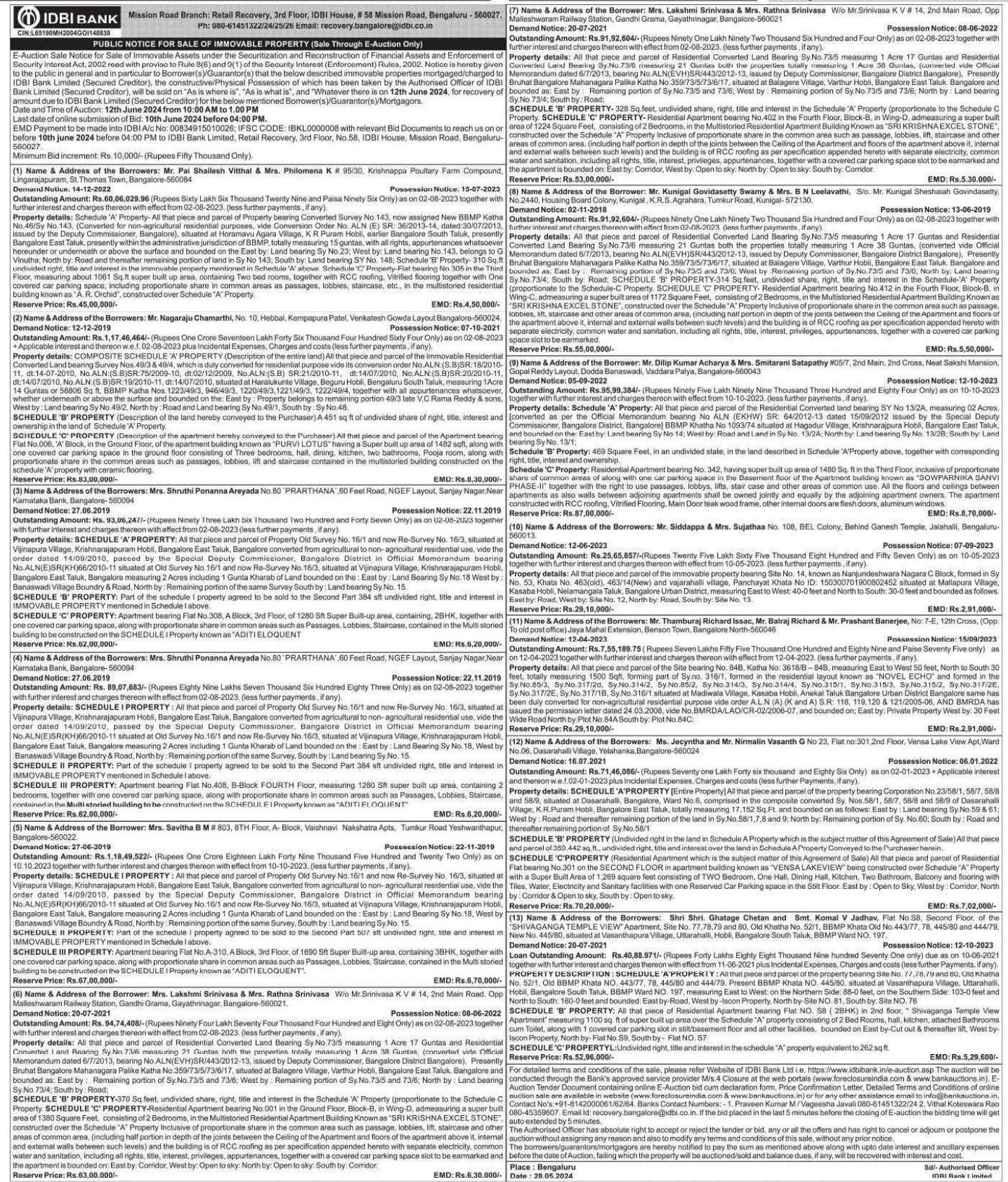 | Inspection Details: | For Inspection : Contact The Authorized Officer: Praveen Kumar M / Vageesha Javali 080-61451322 /24 Vithal Koteswara Rao 080-45359607 |