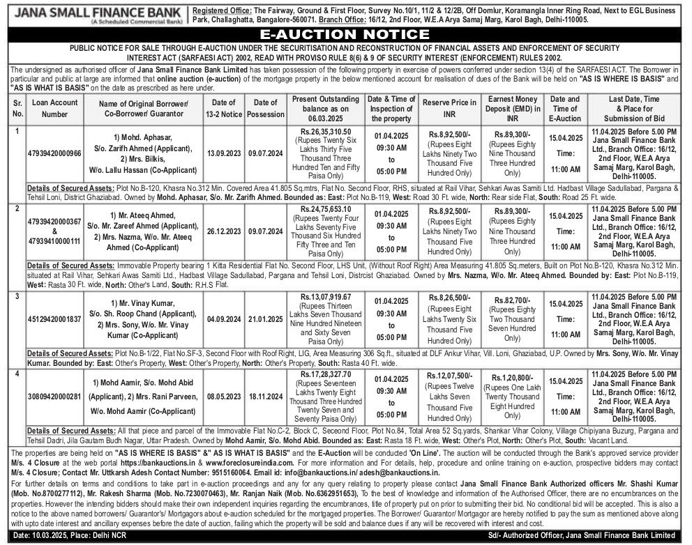 | End Date and Time of Auction: | 15-04-2025 12:00 pm |