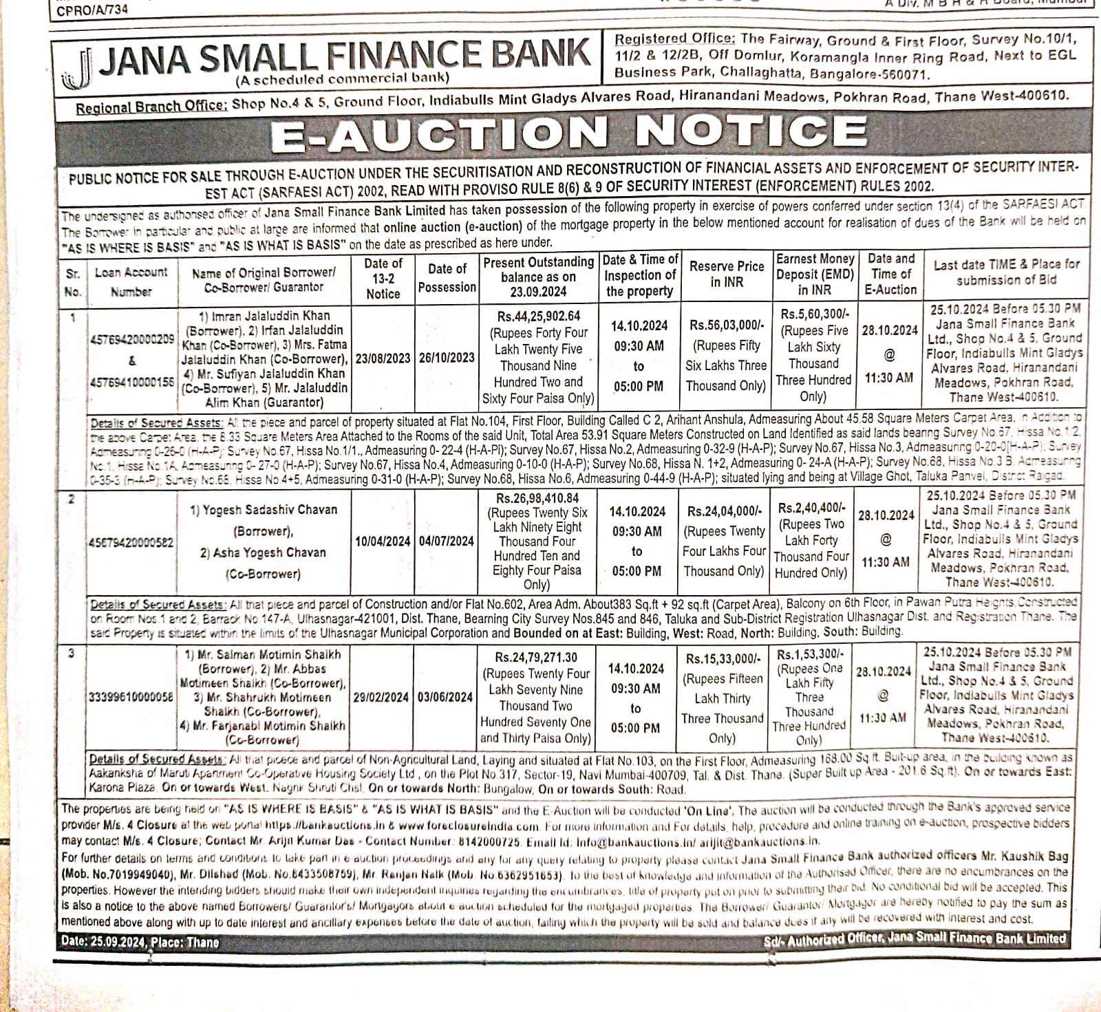 | Contact Details: | Contact the Authorized Officer: Mr. Kaushik Bag(Mob. No.7019949040). Mr. Dilshad (Mob. no.8433508759), Mr. Ranjan Naik (Mob.6362951653) |