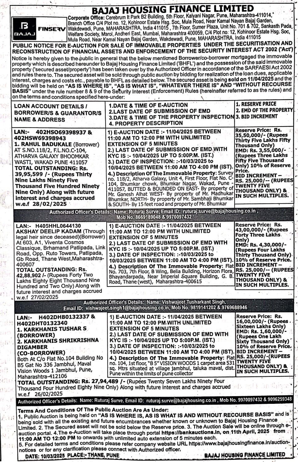 | End Date and Time of Auction: | 11-04-2025 12:00 pm |