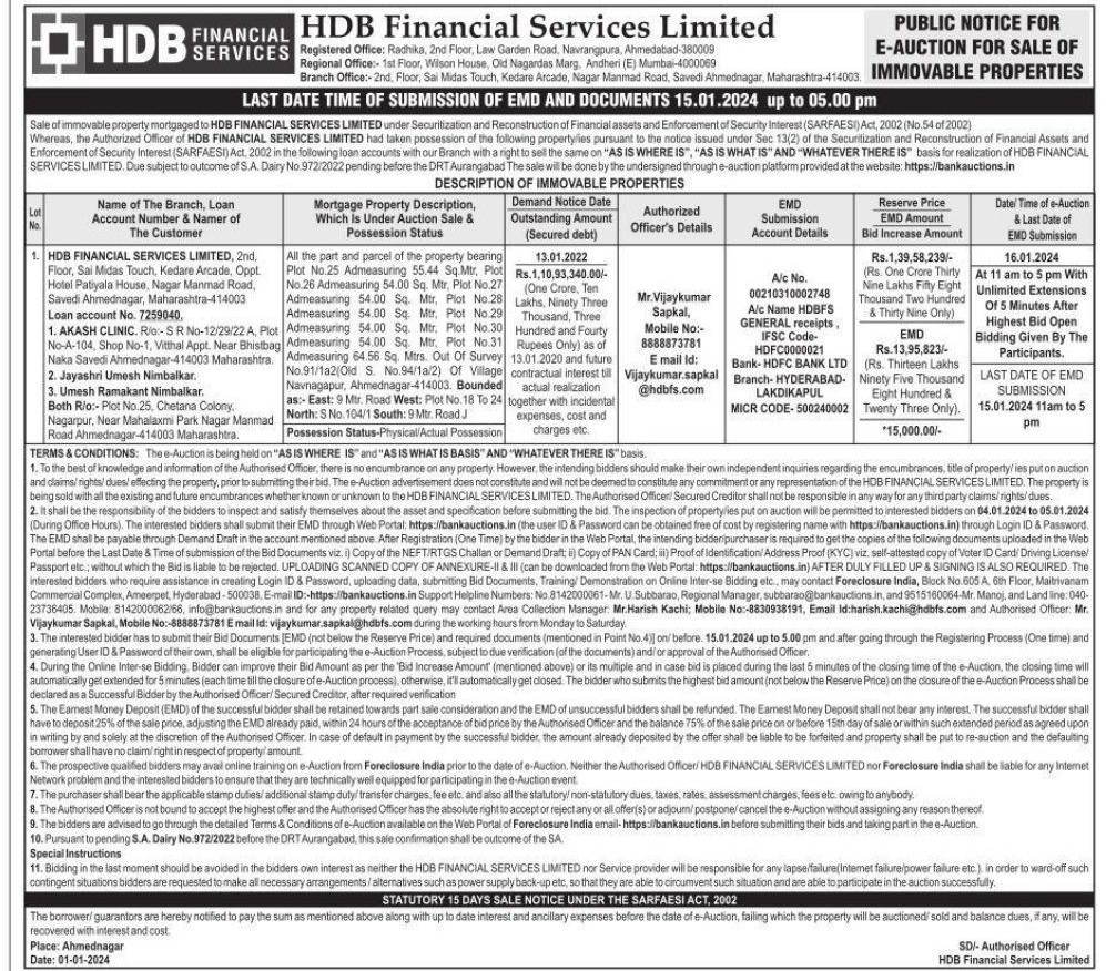 | Contact Details: | Contact the Authorized Officer : Mr. Vijaykumar Sapkal, Mobile No :- 8888873781 / Regional Manager - Mr Harish Kachi - 88309638191 |