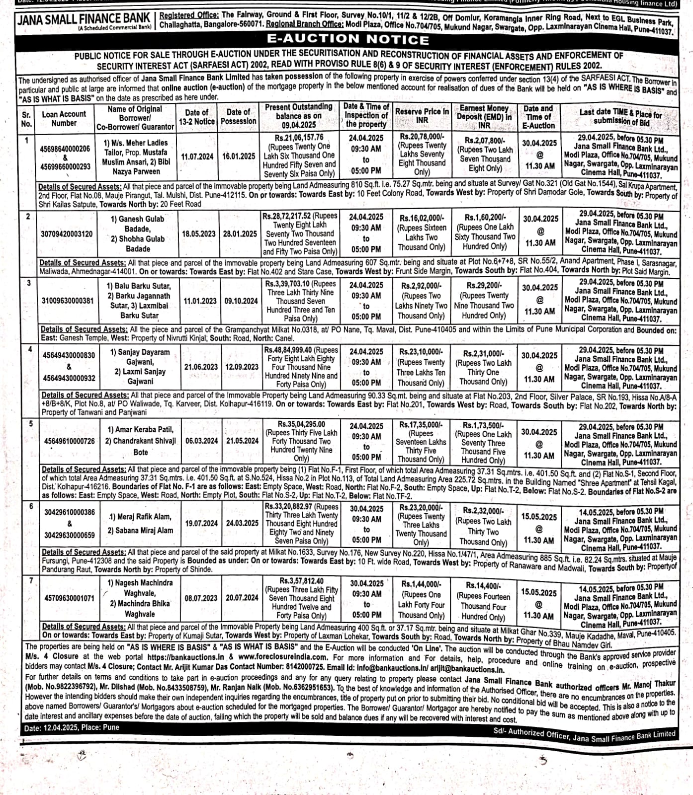 | End Date and Time of Auction: | 30-04-2025 12:30 pm |
