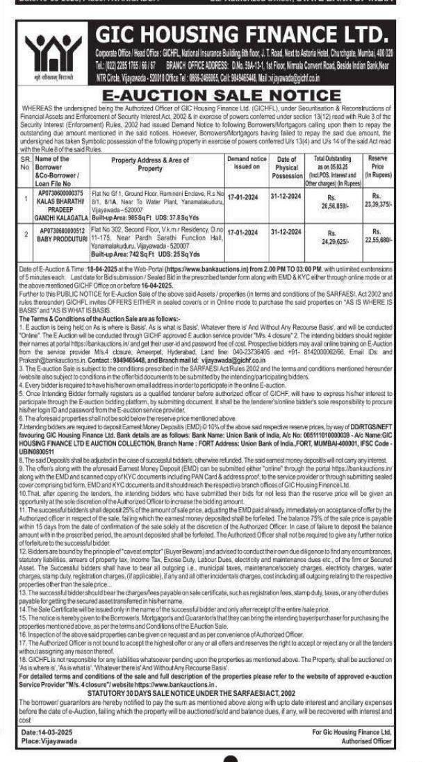| Start Date and Time of Auction: | 18-04-2025 2:00 pm |