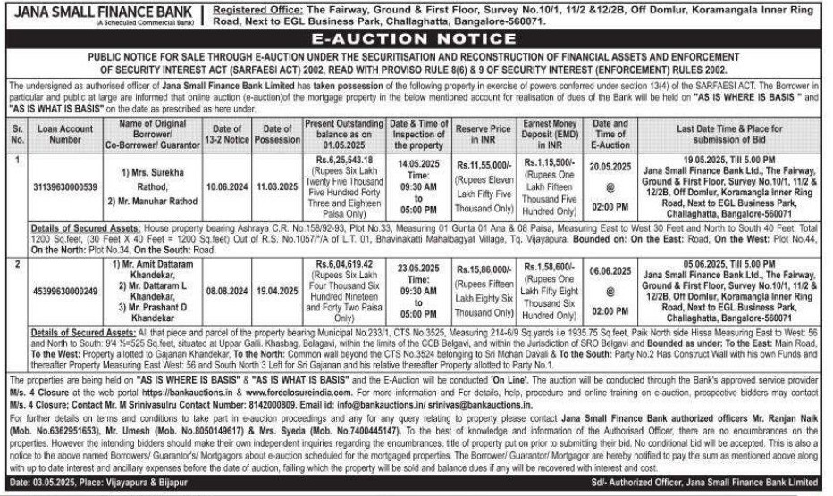 | Contact Details: | Contact The Authorized Officer: Mr Ranjan Naik 6362951653, Mr Umesh 8050149617, Mrs Syeda 7400445147 |