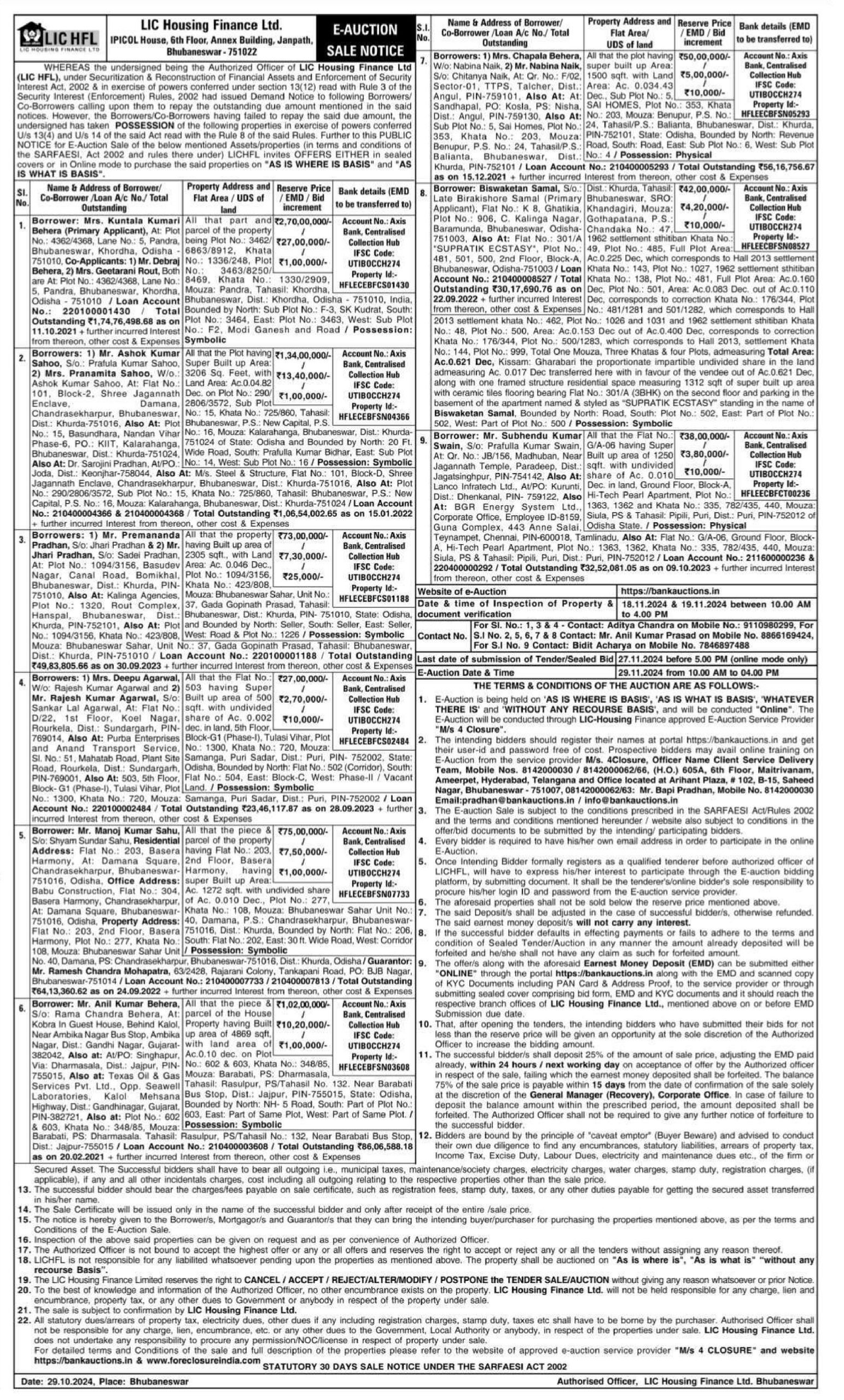 | Contact Details: | Contact The Authorized Officer : Mr. Anil Kumar Prasad 8866169424, |