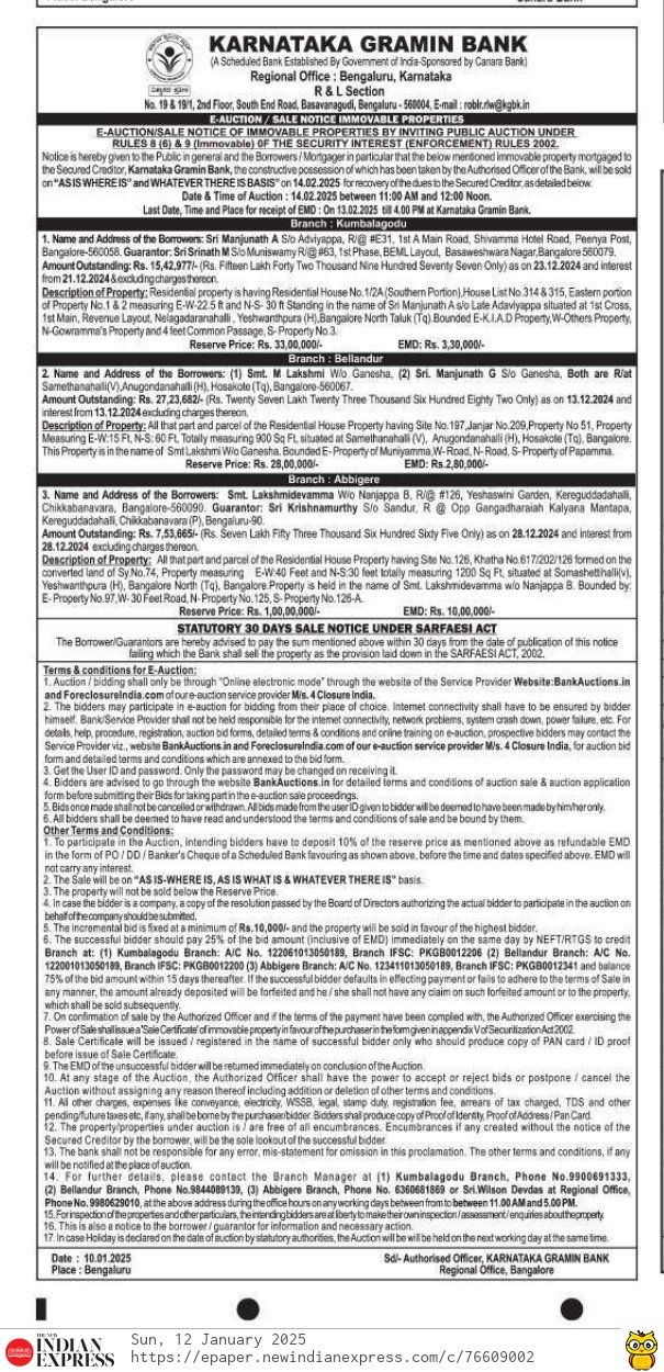 | End Date and Time of Auction: | 14-02-2025 12:00 pm |