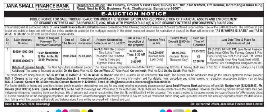 | Contact Details: | Contact The Authorized Officer : Ranjan Naik 6362952653 Umesh 8050149617 Mrs. Syeda 7400445147 |