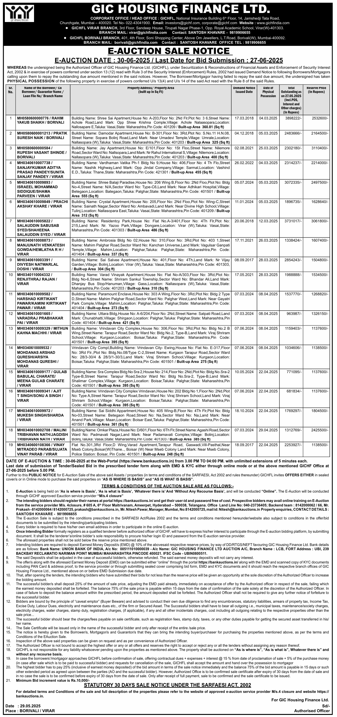 | Contact Details: | Contact The Authorized Officer: SANTOSH KHAVARE : 9819906655 |
