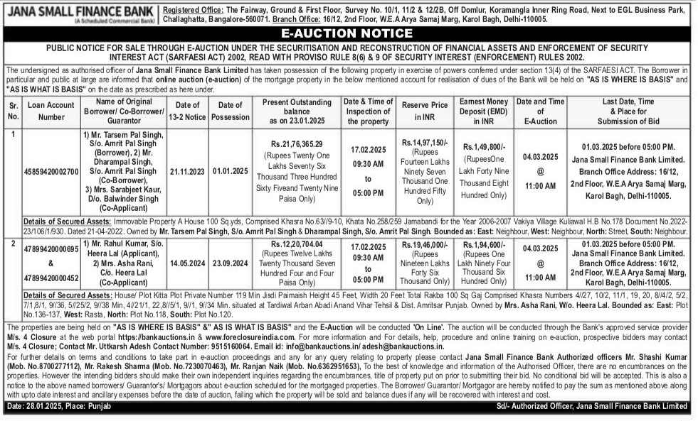 | Start Date and Time of Auction: | 04-03-2025 11:00 am |