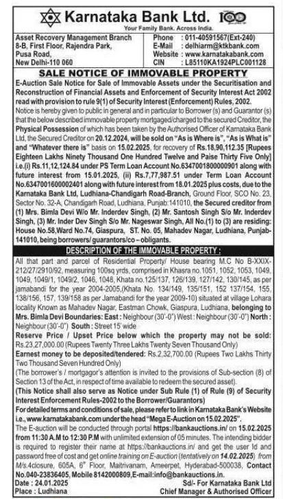 | Start Date and Time of Auction: | 15-02-2025 11:30 am |