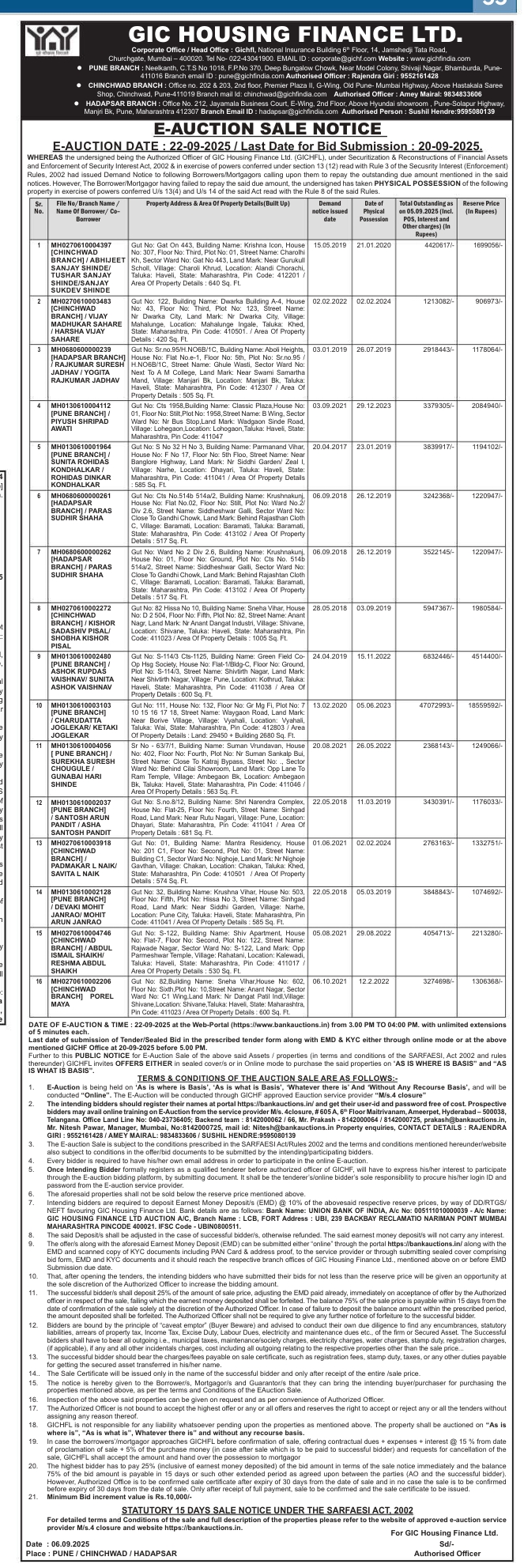 | End Date and Time of Auction: | 22-09-2025 4:00 pm |