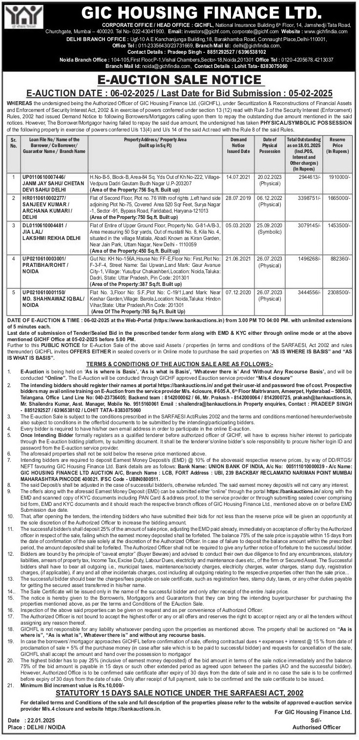 | Contact Details: | Contact the Authorized Officer: Pradeep Singh - 8851292527, 6396538102 |