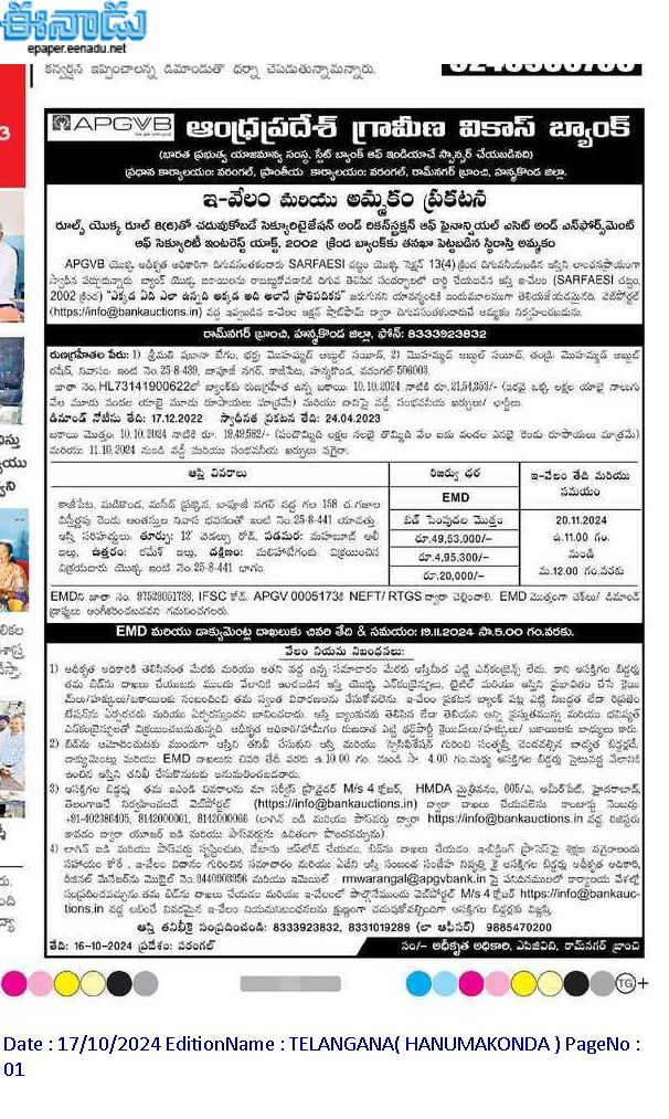 | End Date and Time of Auction: | 20-11-2024 12:00 pm |