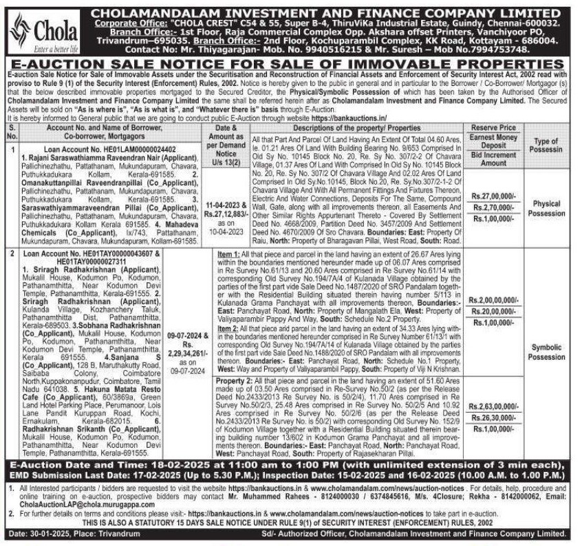 | Start Date and Time of Auction: | 18-02-2025 11:00 am |