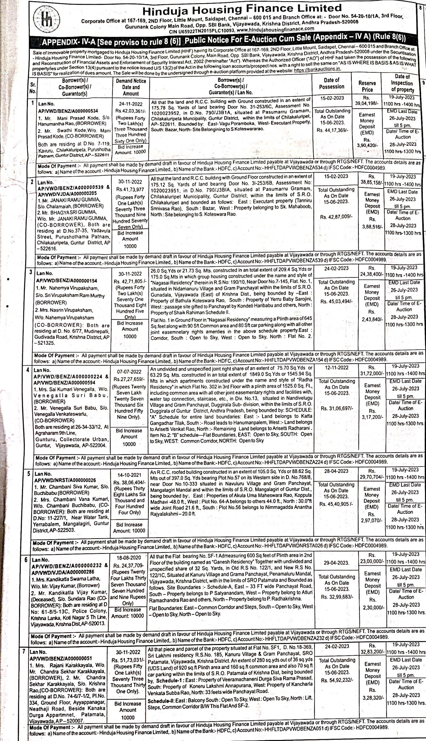 | End Date and Time of Auction: | 28-07-2023 1:00 pm |