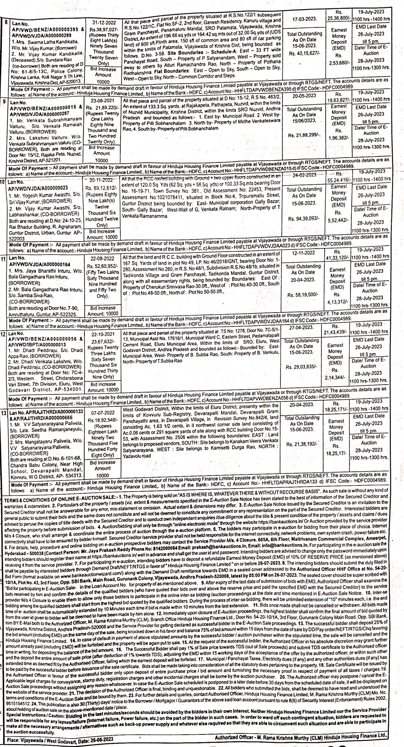 | Contact Details: | Contact The Authorized Officer; M. Rama Krishna Murthy Ph No: 9515154512 |