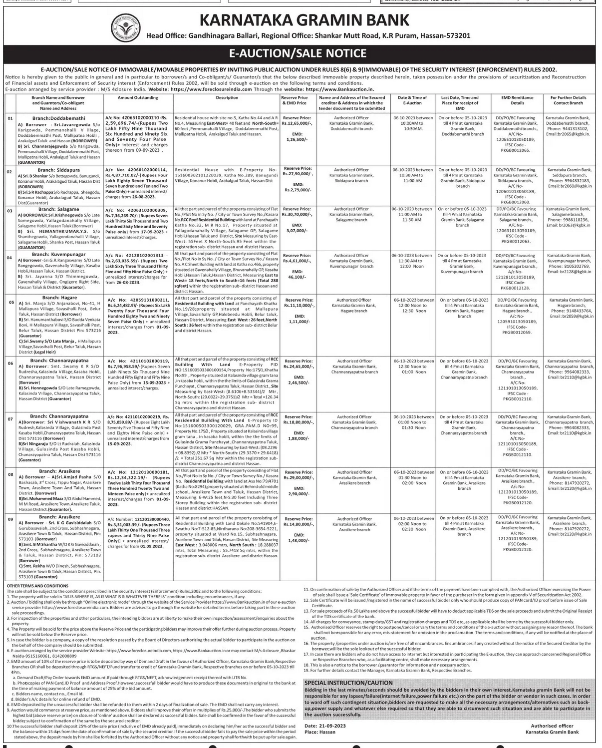 | Contact Details: | Contact The Authorized Officer: Phone No. 9148433764, Email:br2065@kgbk.in. |