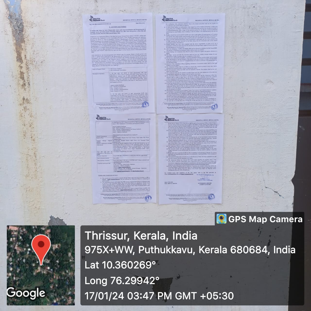 | Schedule of Property: | 1. All that parts and parcel of land admeasuring 4.09 Ares (Equivalent to 10.10 cents) in Survey No.1230/3 along with all other improvements, usufructs and all other easementary rights therein of Kodakara Village, Chalakudy (erstwhile Mukundapuram) Taluk, Thrissur District, , more fully described in Sale Deed No.2137/2011 dated 29/06/2011 of SRO Kallettumkara in the name of Mrs Nimmy Santhosh and bounded as follows: As per Location Certificate East - Property of Thankamani West -Property of Lissy North-Property of Reghunandanan South - Property of Lissy 2. All that parts and parcel of land admeasuring 20.99 Ares (Equivalent to 51.86 cents) i.e., 8.09 Ares in Survey No.1229 & 12.90 Ares (13.55 Ares as per the Title deed) in Survey No 1230/3 along with Residential/ Shop buildings and all other improvements, usufructs and all other easementary rights therein of Kodakara Village, Chalakudy (erstwhile Mukundapuram) Taluk, Thrissur District, more fully described in Sale Deed No.376/74 dated 05/03/1974 of SRO Kallettumkara in the name of Mrs Thankamani Unnichekkan,and bounded as follows: As per Location Certificate East - Vazhy and property of Johnson West - Property of Reghunandanan and Nimmy Santhosh North - Property of Reghunandanan South -Property of Santhosh |