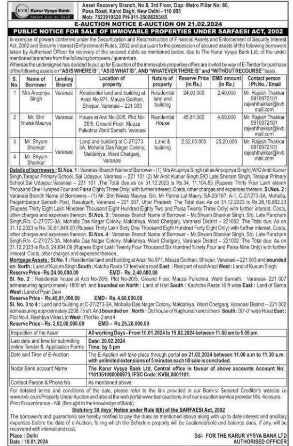 | Start Date and Time of Auction: | 21-02-2024 11:00 am |
